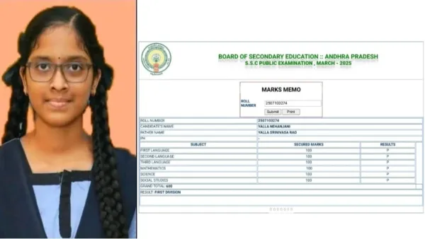 ఆంధ్రప్రదేశ్ రాష్ట్రంలో పదవ తరగతి ఫలితాలు వెలువడగా, ఓ విద్యార్థిని చరిత్ర సృష్టించింది. కాకినాడకు చెందిన నేహాంజని అనే బాలిక భాష్యం పాఠశాలలో చదువుతూ, గతంలో ఎన్నడూ జరగని విధంగా 600కు 600 మార్కులు సాధించి అరుదైన ఘనత సాధించింది. సాధారణంగా అన్ని సబ్జెక్టులలో పూర్తి మార్కులు సాధించడం ఒక సవాలుగా భావించబడుతుంది. కానీ నేహాంజని తన ప్రతిభను చాటుతూ ఈ అద్భుతమైన ఫలితాన్ని నమోదు చేసింది. ఆమె విజయాన్ని చూసి కుటుంబ సభ్యులు, ఉపాధ్యాయులు, మరియు స్థానిక ప్రజలు ఆనందోత్సాహాలతో అభినందనలు వెల్లువెత్తిస్తున్నారు.