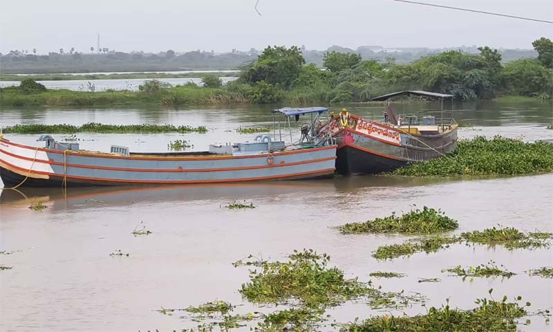 మొంథా తుపాన్ ప్రభావంతో ఆంధ్రప్రదేశ్లో పలు నదులు ఉద్ధృతంగా ప్రవహిస్తున్నాయి. ముఖ్యంగా పెన్నా నదికి భారీగా వరదనీరు చేరడంతో సంగం బ్యారేజీ వద్ద పరిస్థితి ఉత్కంఠగా మారింది. ఈ వరద సమయంలోనే 30 టన్నుల బరువున్న ఇసుక బోటు లంగరు తెగిపోవడంతో అది ప్రవాహంలో కొట్టుకుపోయి నేరుగా బ్యారేజీ గేట్ల వైపు దూసుకెళ్లింది. బోటు వేగం, నీటి ఒత్తిడి చూస్తే క్షణాల్లోనే బ్యారేజీ గేట్లను ఢీకొట్టే అవకాశం కనిపించింది. ఇది జరిగి ఉంటే, బ్యారేజీ గేట్లకు తీవ్ర నష్టం వాటిల్లి ఉండేది. సమాచారం అందుకున్న వెంటనే నెల్లూరు కలెక్టర్ హిమాన్షు శుక్లా, ఎస్పీ, ఇరిగేషన్ అధికారులు అత్యవసర చర్యలు ప్రారంభించారు. డ్రోన్ల సాయంతో బోటు స్థానం గుర్తించి, ఎన్డీఆర్ఎఫ్, ఎస్డీఆర్ఎఫ్ బృందాలను సంఘటనా స్థలానికి తరలించారు.