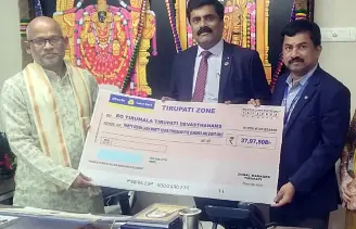 ఈ విరాళానికి సంబంధించిన డిమాండ్ డ్రాఫ్ట్‌ను తిరుమలలోని టీటీడీ(Tirumala Tirupati Devasthanams) అదనపు ఈవో క్యాంపు కార్యాలయంలో ఇండియన్ బ్యాంక్ ఫీల్డ్ మేనేజర్ ప్రణేశ్ కుమార్, టీటీడీ అదనపు ఈవో సి.హెచ్. వెంకయ్య చౌదరికి అందజేశారు.