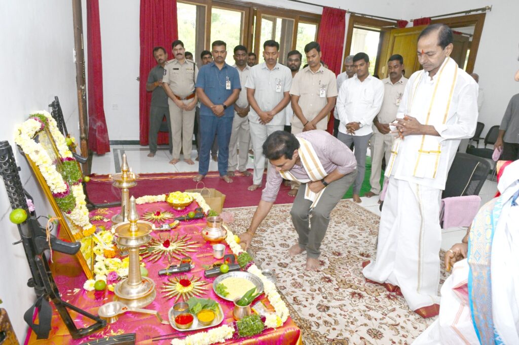 కేసీఆర్ గారు, కేటీఆర్ గారు ఆయుధ పూజలో పాల్గొన్నారు.