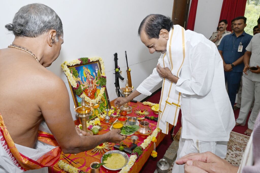 తెలంగాణ తొలి ముఖ్యమంత్రి , బి.ఆర్.ఎస్ BRS పార్టీ అధినేత కల్వకుంట్ల చంద్ర శేఖర రావు గారి నివాసంలో దసరా Dussehra పండుగ పూజా కార్యక్రమాలు ఘనంగా నిర్వహించారు.