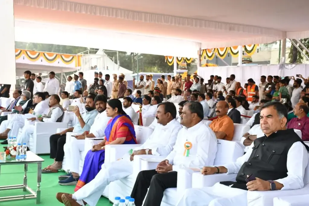 అనంతరం ఆయన సాయుధ దళాల నుంచి గౌరవ వందనాన్ని స్వీకరించారు. పోలీస్ బలగాలు, ఎన్సీసీ కేడెట్లు క్రమశిక్షణతో నిర్వహించిన మార్చ్ పాస్ట్ దేశభక్తిని చాటుతూ ఆహూతులను విశేషంగా ఆకట్టుకుంది.ఈ వేడుకలకు డిప్యూటీ సీఎం భట్టి విక్రమార్క, మంత్రులు కోమటిరెడ్డి వెంకట్ రెడ్డి, శ్రీధర్ బాబు, శాసనసభ స్పీకర్ గడ్డం ప్రసాద్, మండలి ఛైర్మన్ గుత్తా సుఖేందర్ రెడ్డి హాజరయ్యారు.