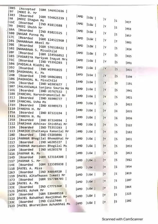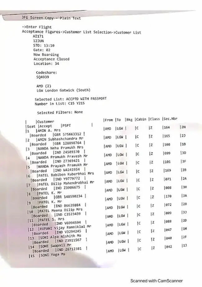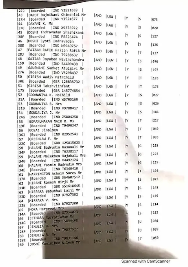 విమాన ప్రయాణీకుల జాబితా విడుదల