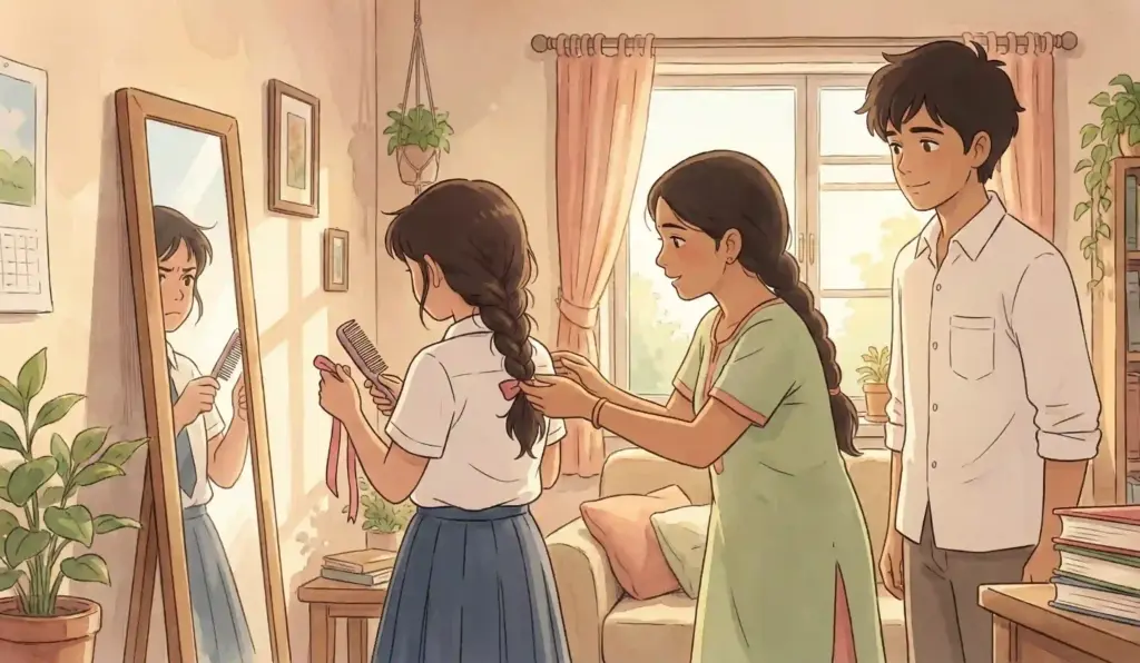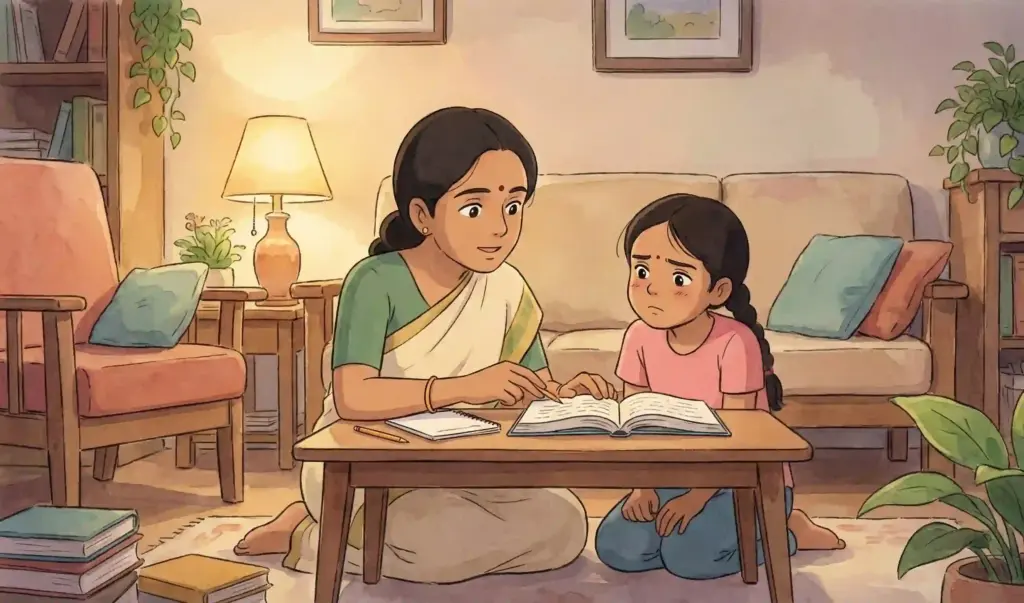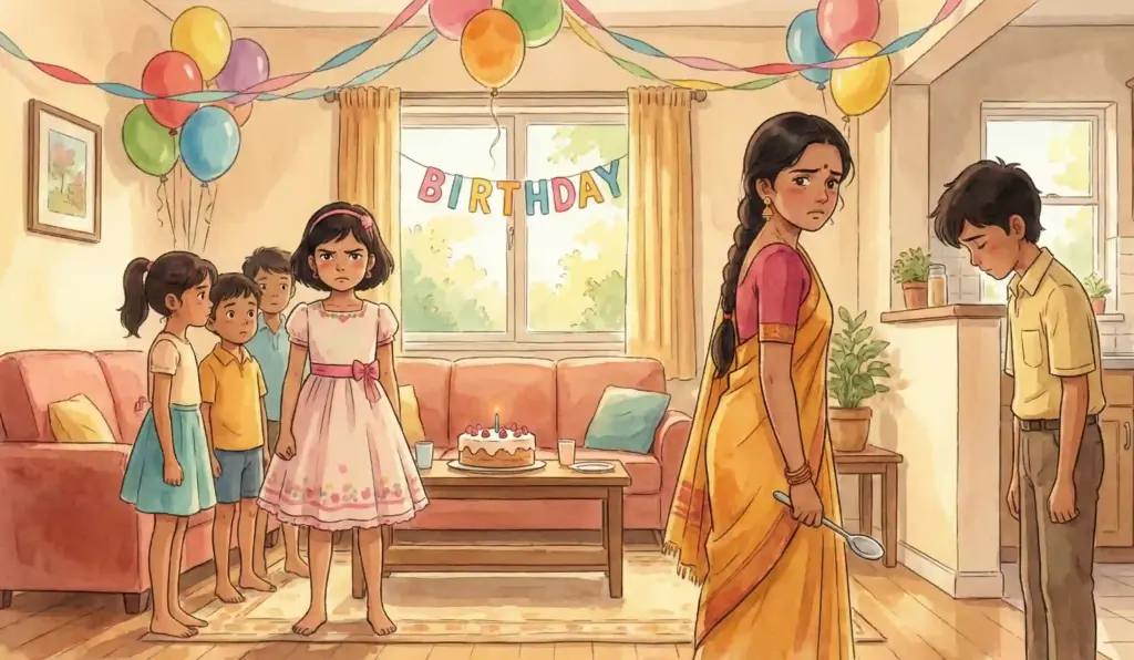 మాధవ్ నిస్సహాయంగా ఇద్దరినీ చూస్తుండేవాడు. ఆ పరిస్థితి ఎంత ఇబ్బందికరంగా ఉంటుందో చెప్పడం కష్టం. ఒకసారి పింకీకి పరీక్షల సమయం. తనకి తెలుగు సరిగ్గా రాదు. తన చౌట్స్ అన్నీ ఎప్పుడూ మాధవ్ క్లియర్ చేస్తుంటాడు. ఆ రోజు మాధవ్కి ఇంట్లో వుండి చదువు చెప్పడం కదురక “అమ్మతో చెప్పించుకొమ్మని” చెప్పి వెళ్లాడు. పింకీ కృష్ణవేణిని అడగలేదు. మాధవ్ కృష్ణవేణికి ఫోన్ చేసి “పింకీ అడగకపోయినా తెలుగుపాఠాలు చదివించు. రేపు తెలుగుపరీక్ష” అని చెప్పాడు. పింకీ ఎలా స్పందిస్తుందో తెలిసినా దగ్గరకు వెళ్లింది కృష్ణవేణి. తెలుగు పుస్తకం చేతిలో పట్టుకుని దిగులుగా కూర్చుంది పింకీ. “డాడీ నీకు తెలుగు చెప్పమన్నారమ్మా” అంటూ కృష్ణవేణి పుస్తకం తన చేతుల్లోకి తీసుకుంది. “నాకు నువ్వేం చెప్పనక్కర్లేదు” అంటూ పుస్తకం లాగేసుకుంది. కృష్ణవేణికి బాధ, చిరాకు రెండూ కలిగాయి. “పింకీ! నన్ను అమ్మలా అనుకోవద్దు. ఒక ట్యూషన్ టీచర్లా భావించి పాఠాలు చెప్పించుకో. అనవసరమైన పంతంతో సమయం వృథా చేసుకోవద్దు. నీకు మార్కులు తక్కువ వస్తే నీ కన్నా నేనే ఎక్కువ బాధపడతాను” అంటూ లేచి వెళ్లపోబోయింది. పింకీ ఏమనుకుందో..! లేచి వచ్చి పుస్తకం చేతికి ఇచ్చింది. మొహమాటపడుతూనే నెమ్మదిగా తన సందేహాలన్నీ అడిగి తెలుసుకుంది. ఆ తరువాత పరీక్షల్లో మంచి మార్కులు వచ్చాయి. కృష్ణవేణి చాలా సంతోషించింది. కానీ పింకీ నుండి ‘థాంక్స్’ అన్న చిన్న మాట కూడా లేకపోవడంతో తెలియకుండానే బాధ కలిగింది. పింకీ పుట్టినరోజు వచ్చింది. తన స్నేహితులందరినీ ఇంటికి ఆహ్వానించింది.