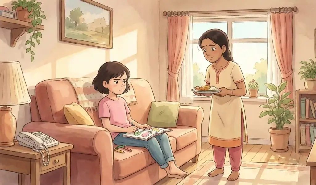 “అమ్మ వేస్తానంటోందిగా, వెళ్లు తల్లి” అన్నాడు మాధవ్. “వద్దు” పెడసరంగా సమాధానమిచ్చింది. “పింకీ” అంటున్న మాధవ్ వంక వారించినట్లుగా చూసింది కృష్ణవేణి. మాధవ్ మాట్లాడకుండా పింకీకి జడ వేసాడు. రోజలు అదే విధంగా గడుస్తున్నాయి. మాధవ్ పని మీద నాలుగు రోజులు. ఊరు వెళ్లవలసి వచ్చింది. అప్పుడు పింకీకి వేసవి సెలవులు కావడం వల్ల ఇంటి పట్టునే ఉంది. ఆ సమయాన్ని పింకీతో సాన్నిహిత్యం పెంచుకునేందుకు సద్వినియోగం చేసుకోవాలని కృష్ణవేణి ఉవ్విళ్లూరింది. “పింకీ! అన్నం తిందాం రామ్మా” అని పిలిచేది. “నాకు ఆకలిగా లేదు” చెప్పి అక్కడినుండి వెళ్లిపోయేది పింకీ. తనకోసం ఎంతసేపు ఎదురు చూసినా వచ్చేది కాదు. తన రూములోకెళ్లి పడుకోగానే పింకీ బయటకు వచ్చి అన్నం పెట్టుకుని తినేది. “నీకు ఏ కూరంటే ఇష్టం? ఏం వండమంటావు పింకీ?” అనేది కృష్ణవేణి. “ఏది వండినా సరే” అనేది పింకీ. “సినిమాకు వెళ్లామా?” “నేను రాను, బొమ్మలు వేసుకోవాలి” అనేది తల ఎత్తకుండానే. “ఏదయినా పార్కుకి వెళ్లి సరదాగా తిరిగివద్దామా పింకీ!” “డాడీ వచ్చాక వెళ్లాం” టీవీపై నుండి దృష్టి మరల్చకుండానే అనేది. పింకీ ప్రతి రెండు గంటలకొకసారి వాళ్ల డాడీకి ఫోన్ చేసి “డాడీ! ఎప్పుడు వస్తున్నారు? నాకు బోర్గా ఉంది. త్వరగా రండి. నేను ఒక్కదాన్నే ఉండలేకపోతున్నాను” అని కంప్లెయింట్ చేసేది. ఇదంతా చూస్తున్న కృష్ణవేణి మనసు చివుక్కుమనేది. ఒక్కోసారి విసుగ్గా కూడా అనిపించేది. కావాలని ఏదో ఒకటి కల్పించుకుని మాటలు కలిపినా “వద్దు, తెలియదు, అలాగే” అనే మాటలు తప్ప పింకీ నుండి వేరే సమాధానాలు వచ్చేవి కావు. రోజులు అలాగే గడుస్తున్నాయి.