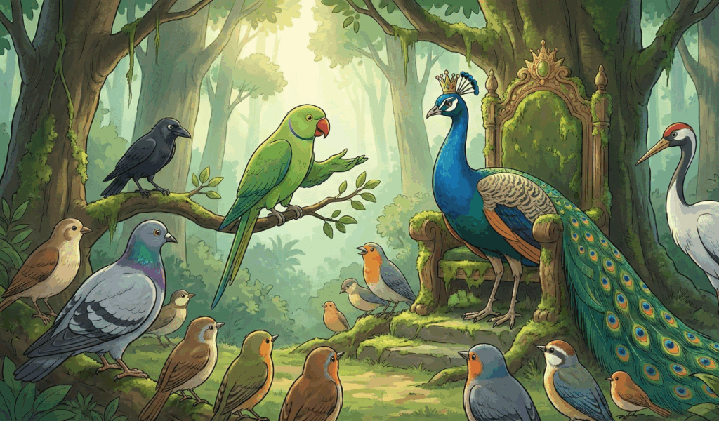 కాకినే కాకుండా అన్ని పక్షులను పిలిచి అడిగింది పక్షిరాజ ‘నేనటువైపు వైపు వెళ్లలేదు’ అంది పావురం. ”నా నాట్యంతో మెప్పిస్తాను తప్ప దొంగతనం తెలియదు అంది నెమలి’, చేపల్ని తింటాను కానీ బొమ్మ నేనేం చేసుకోవాలి?’ అంది కొంగ.దాదాపు అన్ని పక్షులూ బొమ్మను తీయలేదనే చెప్పాయి. అంతవరకూ కాకి ఎక్కడికో వెళ్లడం వల్ల రాలేదు. తరువాత వచ్చి ‘నేనే కాకిని. కాకి బొమ్మ నాకెందుకు?’ అంది. ‘మరెవరు తీసినట్టు’ అని పక్షిరాజు అంటుండగా ‘మనమే తీశామని ఎందుకనుకుంటారు? మనుషులే తీసారేమో’ అనుమానంగా చెప్పింది కాకి. అంతలో మైనా అక్కడకు మ వచ్చి కాకి పిల్ల ఆ బొమ్మతో అట్లాడుతుండగా చూసానని చెప్పింది. పక్షిరాజు తీక్షణంగా చూసి ‘నిజం చెబుతావా దండించమంటావా?’ అని కాకిని అడిగింది.