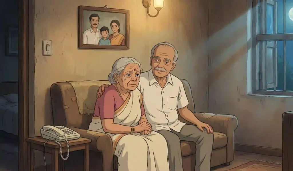 రఘుపతి దంపతులు. సంతోష సమయంలో గడిపిన రోజుల్ని తలచుకొంటూ కాలం గడుపుతున్నారు ఈ వృద్ధ దంపతులు. ఇప్పుడు రఘుపతి వయసు 80 సంవత్సరాలు. పదేళ్ల క్రితం గుండె కవాటాలకి ఆపరేషన్ అయ్యింది. ఈ మధ్యే పేస్మేకర్ కూడా పెట్టించుకొన్నాడు. రాధమ్మకి గుండెకి స్టెంట్ వేశారు. కొడుకు వ్యవహారంలో చాలా చితికిపోయారు. ఖాళీగా వున్న రూంలన్నింటికీ తాళాలేసి ఒకే రూములో కాలం గడుపుతున్నారు. నెల నెలా వచ్చే పెన్షన్, రఘుపతి ఉద్యోగం చేసినప్పుడు చేసిన పొదుపుతో దేవుడి దయ వల్ల వాళ్లకి ఆర్థిక ఇబ్బందులేమీ లేవు. రఘువతికి దగ్గరి బంధువులెవరూ లేరు. వరసకు తమ్ముడైన రామారావు అప్పుడప్పుడు వచ్చి చూసిపోతుంటాడు రాకేష్ ఎండీ పూర్తి చేసి ఒక మెడికల్ చేరాడు. ఒకరోజు వాళ్ల డైరెక్టర్ పిలిచి ఇండియా వెళ్లటానిర్ ప్రస్తావించాడు. హైదరాబాద్లో శస్త్రచికిత్సలో రోబోల పాత్ర గురించి ఒక అంతర్జాతీయ సమావేశం వచ్చే జరగుబోతోంది. వాళ్ల 16న నుంచి ఒకరిని పంపించవచ్చు. దానికి సుముఖంగా ఉంటే రాషి ఆ అవకాశం దొరుకుతుంది. రాకేష్కి ఎగిరి. గంతేసినట్లయింది. వెంటనే ఒప్పుకున్నాడు. ఇండియాకి వెళ్లటానికి వీసా తీసుకొని రెడీగా ఉండమన్నాడు డైరెక్టర్, ఆదేరోజు వీసాకి అపై చేశాడు రాకేష్, సంతోషంగా తండ్రికి ఫోన్ చేశాడు రాకేష్ “డాడ్! నాకు హైదరాబాద్ వెళ్లటానికి అవకాశం వచ్చింది. అక్కడ ఒక సమావేశంలో పాల్గొనాలి.