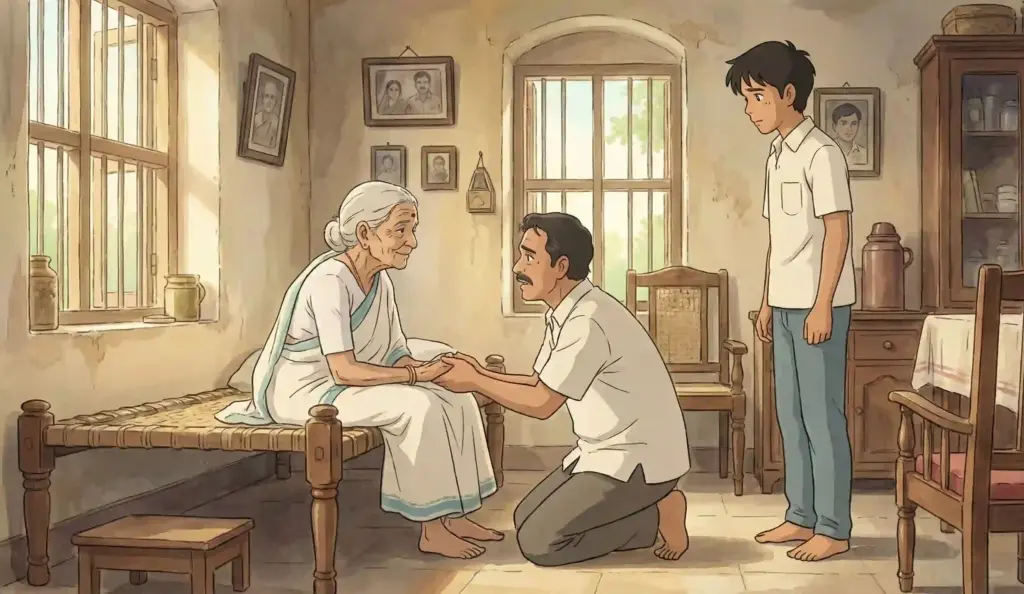 గొంతు పొడారిపోయింది. సన్నని గొంతుతో “పిలవండి” అన్నాడు. “ఎవరబ్బా?” అనుకొంటూ ఒక ముసలావిడ వచ్చింది. డెబ్భై ఐదు ఏళ్లుంటాయేమో! వచ్చి నుంచుంది. “నేనే… నేను…” అని తడబడుతున్నాడు. రాకేష్, చివరకి గొంతు పెగుల్చుకొని బామ్మా అంటూ ఆ ముసలావిడని పట్టుకొన్నాడు. రాకేష్ బాబు అంటూ గుండెలకు హత్తుకొంది. రాధమ్మ, ఇద్దరూ పెద్దగా ఏడుస్తున్నారు. నీ తాతయ్య ఇక లేదురా. నువ్వింకా ఎవర్ని తాతా అని పిలుస్తావు? అంటూ గట్టిగా రోదిస్తోంది రాధమ్మ. పది నిమిషాలదాకా ఇద్దరూ తేరుకోలేదు. “మీ అమ్మ, నాన్న ఏరి?” లాధమ్మ అడిగింది. “వాళ్ల రాలేదు బామ్మా. అయినా వాళ్లకి తాత గురించి తెలియదు. నాకూ ఇప్పుడే తెలిసింది. నేను పని మీద హైదరాబాద్ వచ్చాను. ఇప్పుడే డాడీకి ఫోన్ చేసి పోశారు రామ్ కాపెరికాలో ఉదయం అదే విషయం శ్లేష్ అమ్మకి చెప్పాడు.. పౌమ్య మొహంలో తెలుగు కనిపించింది. అయిపోయిందని లోపల్నింది బ్రాహ్మడి గొంతు గట్టిగా వినిపించింది. నాన్నా” అంటూ రాకేషని లోపలికి చేసినా తీసుకెళ్లింది. రాధమ్మ. “ఎవరీ అచ్బాయి? అని హాల్లో, కూచున్నాయన ఓనాయన అడిగాడు. “నా మనవడ్రా అబ్బిగా, అమెరికా నుంచి వచ్చాడు” అని గర్వంగా బదులిచ్చింది రాధమ్మ. “ఏం చదువుకొన్నావు బాబూ?” అంటూ ఇంకొకాయన అడిగాడు. బామ్మ వేపు చూస్తూ “నేను డాక్టర్నండి” అని సమాధానమిచ్చాడు రాకేష్, అది విన్న వెంటనే హాలులో ఉన్న అందరి మొహాల్లో ఒక ఆరాధన లాంటిది. కనిపించింది.