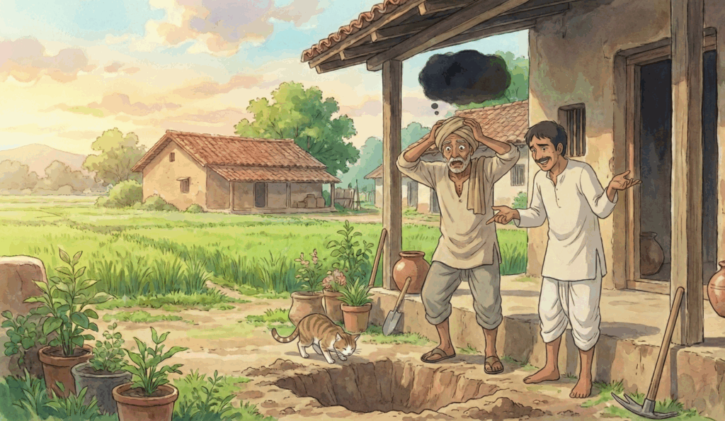 రంగయ్య అధిక తెలివితో ఆలోచించి ఎల్లయ్యకు “ఇంకా ఎక్కువ కాలం కష్టపెట్టి ఎక్కువ సంపాదన కూడబెట్టిం చి, తన చిన్న కొడుక్కి ఎక్కువ ఆస్తిని సమకూర్చి పెట్టాలని, తరువాత ఎల్లయ్య మరణాననంతరం దాన్ని తన ఇద్దరు కొడుకులకు వంచి పెట్టాలని చూసి “ఎల్లయ్యా! నీకు చెప్పడం మర్చిపోయాను. నీ సంపాద న అంతా మా ఇంటి పెరట్లో గొయ్యి తీసి దాచిపెట్టేవా డిని. ఆ గొయ్యికి ఆకలి ఎక్కువై నీ ఆస్తిని తినేసింది. జరిగిందేదో జరిగిపోయింది. ఇంకా నీకు వయసు, కండబలం వుంది కాబట్టి ఇకపై సంపాదన నాకు ఇస్తే నా అటక మీద పెట్టి భూమి నోటికి అందకుండా జాగ్రత్తగా ఉంచుతాను. నీ పెంపుడు కొడుకు కోసం ఇకపై కూడా బాగా కష్టపడు” అన్నాడు నక్క వినయాలు నటిస్తూ, వారం రోజుల తరువాత ఇంటికి వచ్చి రంగయ్యశెట్టి ముందు బోరున ఏడ్చాడు. జరిగిందేదో జరిగిపోయింది. ఇంకా నీకు వయసు, కండబలం వుంది కాబట్టి ఇకపై సంపాదన నాకు ఇస్తే నా అటక మీద పెట్టి భూమి నోటికి అందకుండా జాగ్రత్తగా ఉంచుతాను.