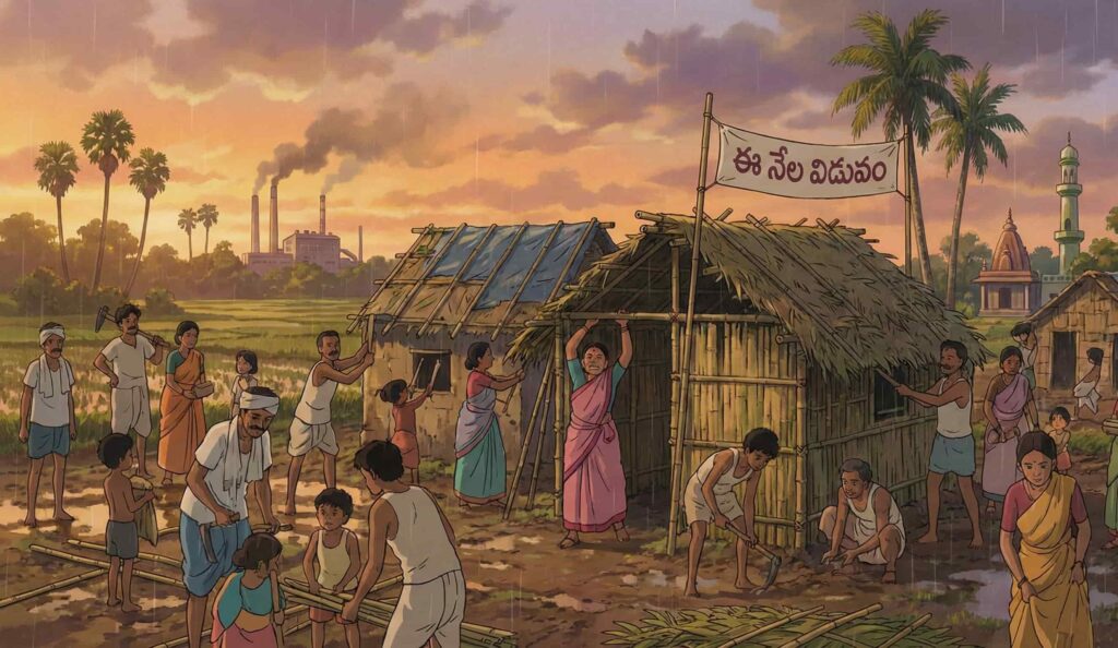 సర్కార్వాళ్ల కూల్చడం, మళ్లీ గుడిసెలు వేసుకోవడం, ఎండలో, వర్షాల్లో నానా బాధలు పడుతున్నాం. మా వూళ్లో మేమే ఎలా పరాయివాళ్లం అయ్యాం?” అంది అంత నిస్సత్తువలో కూడా లక్ష్మమ్మ.