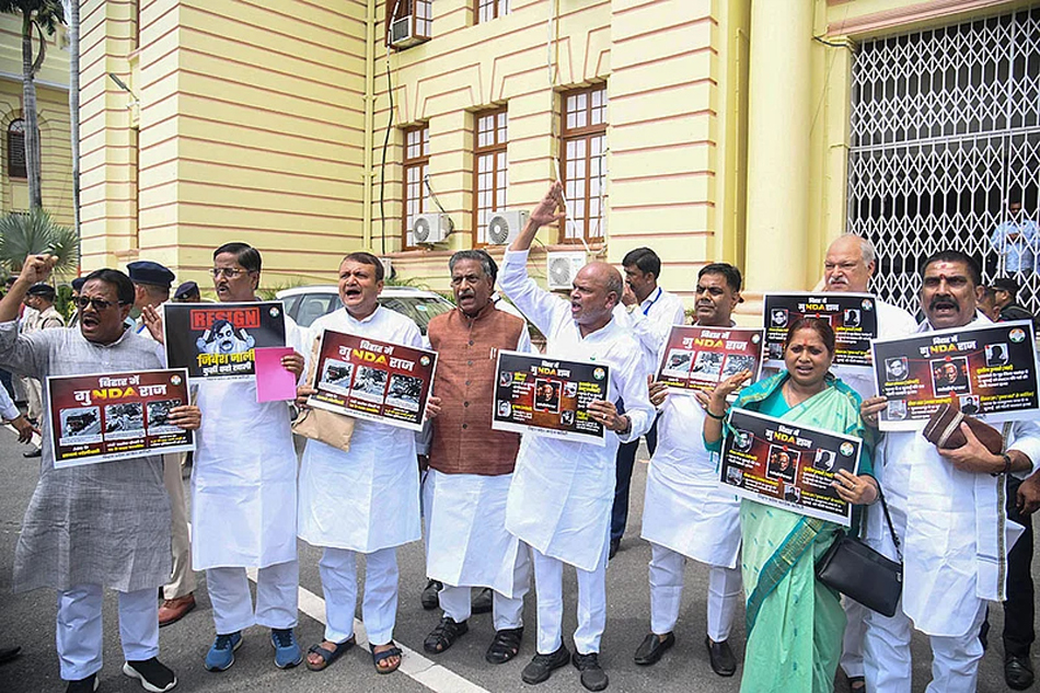 పాట్నాలో సోమవారం జరిగిన నేషనల్ డెమోక్రటిక్ అలయన్స్ (ఎన్డిఎ) సమావేశంలో మాట్లాడుతున్న బీహార్ ముఖ్యమంత్రి నితీష్ కుమార్. చిత్రంలో ఉప ముఖ్యమంత్రి సామ్రాట్ చౌదరి తదితరులుపాట్నాలో బీహార్ అసెంబ్లీ వర్షాకాల సమావేశాల మొదటి రోజు సోమవారం నిరసన ప్రదర్శన చేస్తున్న కాంగ్రెస్ శాసనసభ్యులుగౌహతి హైకోర్టు ప్రధాన న్యాయమూర్తిగా ప్రమాణం చేసిన జస్టిస్ అశుతోష్ కుమార్ శుభాకాంక్షలు తెలుపుతున్న అసోం గవర్నర్ లక్ష్మణ్ ప్రసాద్ ఆచార్యజమ్మూ కాశ్మీర్లోని రియాసి జిల్లాలో వైష్ణో దేవి మందిరానికి వెళ్లే పాత ట్రాక్పై కొండచరియలు విరిగిపడిన నేపథ్యంలో సోమవారం పునరుద్ధరణ పనులు చేస్తున్న దృశ్యంన్యూఢిల్లీలోని పార్లమెంట్ హౌస్ CPP కార్యాలయంలో సోమవారం ఖర్గే కు పుట్టిన రోజు శుభాకాంక్షలు తెలుపుతున్న పలువురు నేతలున్యూఢిల్లీలోని పార్లమెంట్ హౌస్ వద్ద వర్షాకాల సమావేశాల ప్రారంభానికి ముందు సోమవారం మీడియాతో మాట్లాడుతున్న ప్రధాని మోడీన్యూఢిల్లీలోని పార్లమెంట్ హౌస్ వద్ద వర్షాకాల సమావేశాల ప్రారంభానికి ముందు సోమవారం మీడియాతో మాట్లాడుతున్న ప్రధాని మోడీన్యూఢిల్లీలోని పార్లమెంట్ హౌస్ వద్ద వర్షాకాల సమావేశాల ప్రారంభానికి ముందు సోమవారం మీడియాతో మాట్లాడుతున్న ప్రధాని మోడీముంబయిలో సోమవారం భారీ వర్షానికి వరద నీటిలో మునిగిపోయిన అంధేరి సబ్వే దృశ్యంఐదుగురు వ్యక్తులు గంగా నదిలో గల్లంతయిన నేపథ్యంలో సోమవారం గాలింపు చర్యలు చేపట్టిన ఎస్డిఆర్ ఎఫ్ సిబ్బంది, స్థానిక పోలీసులుపవిత్ర శ్రావణ మాసంలోని రెండవ సోమవారం నాడు ప్రయాగరాజ్లోని ఒక ఆలయంలో పూజలు చేస్తున్న భక్తులుసోమవారం రాజ్యసభలో ప్రసంగిస్తున్న కేంద్ర మంత్రి కె రామ్మోహన్ నాయుడుసోమవారం కోల్కతాలో నిర్వహించిన అమరవీరుల దినోత్సవ ర్యాలీ దృశ్యం