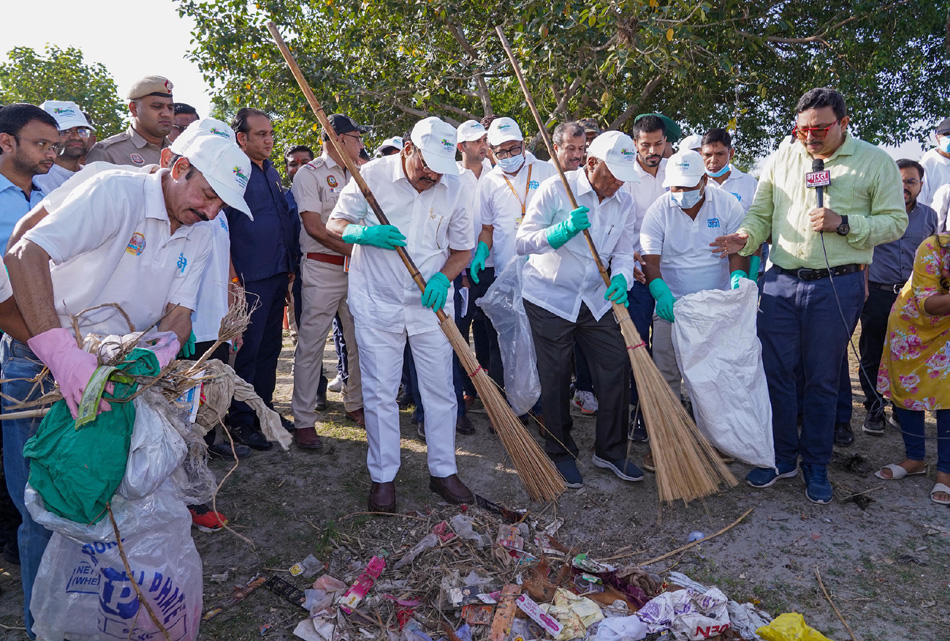 స్వచ్ఛ భారత్ అభియాన్ కార్యక్రమంలో భాగంగా గురువారం అహ్మదాబాద్లో జరిగిన పరిశుభ్రతా కార్యక్రమంలో పాల్గొన్న గుజరాత్ ముఖ్యమంత్రి భూపేంద్ర పటేల్