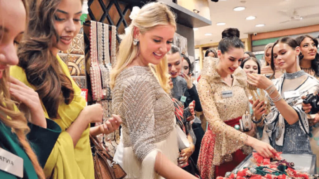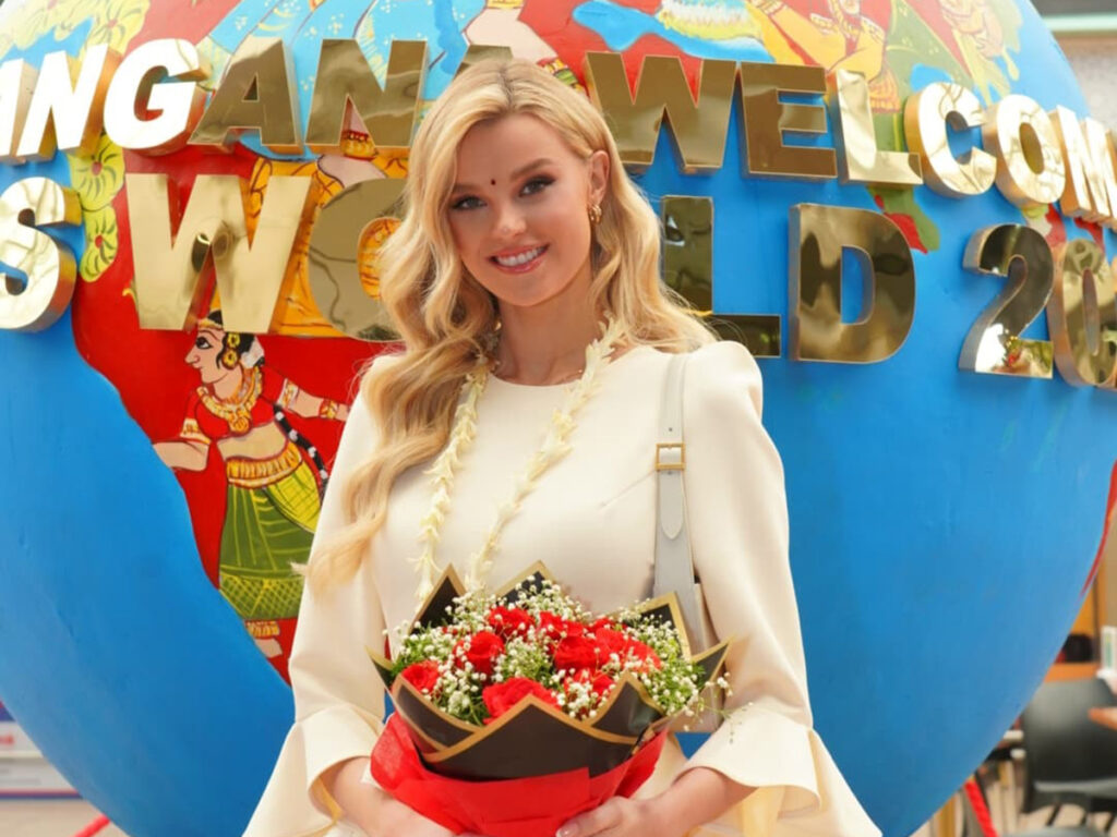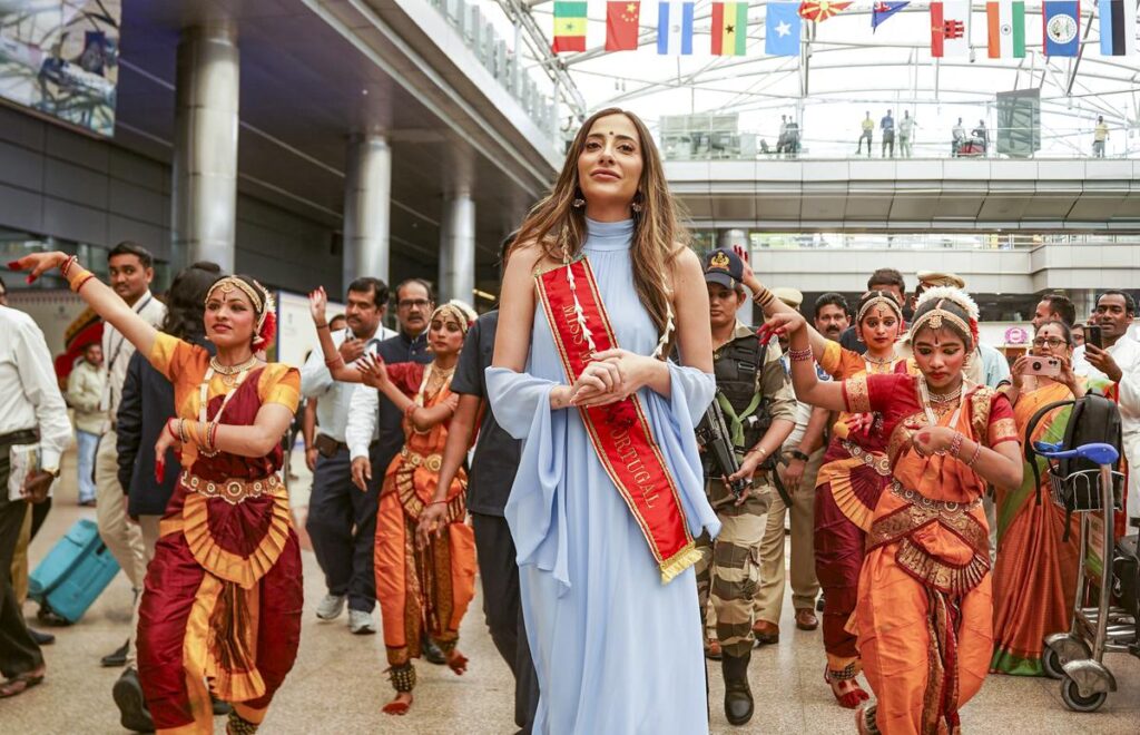 తెలంగాణ సంస్కృతిని ప్రతిబింబించే విధంగా ఈ బ్యూటీలకు స్వాగతం పలికారు. డోలు, బతుకమ్మలోల+తో వీరిని వరంగల్ జిల్లాలోకి ఆహ్వానించారు. అంతేకాకుండా ఈ సుందరాంగులు బతుకమ్మ వద్ద నృత్యాలు చేయడమే కాకుండా, డోలు చపుడుకు డ్యాన్స్లు చేస్తూ సందడి చేశారు.