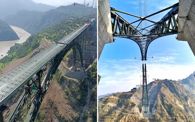 జమ్మూకశ్మీర్లో చినాబ్ రైల్వే బ్రిడ్జి(Chenab Bridge)ని జూన్ 6న ఎంతో అట్టహాసంగా ప్రారంభించారు ప్రధాని మోదీ(Prime Minister Modi). ఇది ఢిల్లీలోని కుతుబ్ మినార్ కంటే 5 రెట్ల ఎత్తు ఉంటుంది. ఇక ప్యారిస్లోని ప్రపంచ వింత అయిన ఈఫిల్ టవర్ను కూడా తలదన్నేలా ఈ చినాబ్ రైల్వే వంతెన ఉంటుంది. చినాబ్ నదిపై నిర్మితమైన ఈ వంతెనను భారతీయ రైల్వే చరిత్రలో ఇంజినీరింగ్ అద్భుతంగా భావిస్తున్నారు. చినాబ్ రైల్వే బ్రిడ్జి నిర్మాణంతో…దేశానికి కశ్మీర్తో మరింత దృఢమైన బంధాన్ని ఏర్పరచింది ఇండియన్ రైల్వేస్. ఇది ప్రపంచంలోనే అత్యంత ఎత్తైన రైల్వే ఆర్క్ బ్రిడ్జ్. కుతుబ్ మినార్ ఎత్తు 72 మీటర్లు, ఈఫిల్ టవర్ ఎత్తు 324 మీటర్లు ఉంటే, రివర్ బెడ్ నుంచి చినాబ్ బ్రిడ్జి ఎత్తు 359 మీటర్లు ఉంటుంది.