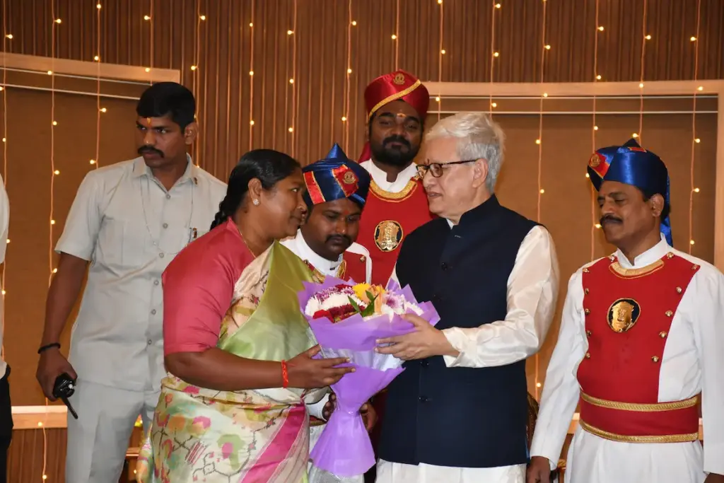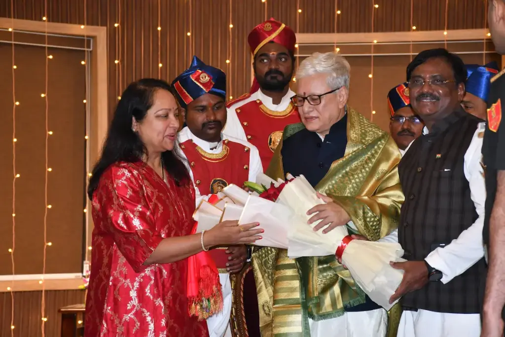తెలంగాణ (Telangana) లోక్ భవన్ లో నూతన సంవత్సర వేడుకలు ఘనంగా, జరిగాయి. ఈ సందర్బంగా, రాష్ట్ర మంత్రులు, గవర్నర్ జిష్ణుదేవ్ వర్మకు, పుష్ప గుచ్చాలిచ్చి నూతన సంవత్సర శుభాకాంక్షలు తెలిపారు. అంతే కాక, గవర్నర్ కు పలువురు విద్యార్థులు చిన్నారులు, బ్రహ్మకుమారి సభ్యులు గవర్నర్ జిష్ణుదేవ్ వర్మకు పుష్ప గుచ్చాలిచ్చి నూతన సంవత్సర శుభాకాంక్షలు తెలిపారు.
