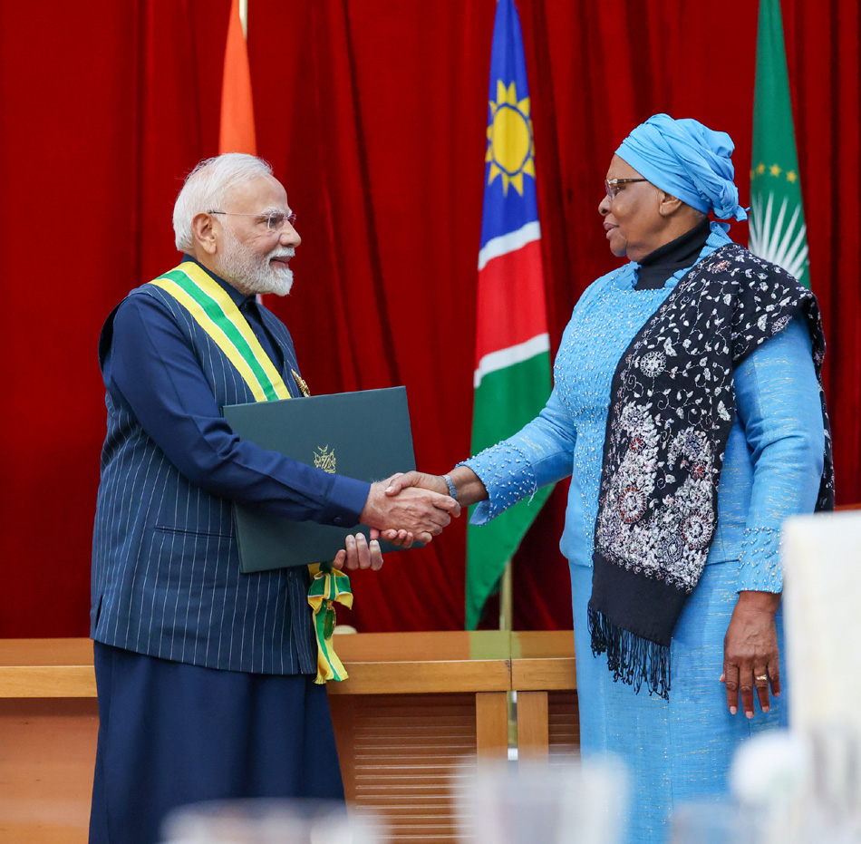 గుజరాత్ వడోదర సమీపంలోని ముజ్పూర్లో బుధవారం వంతెన కూలిపోవడంతో పలు వాహనాలు నదిలో పడిపోయిన దృశ్యంగుజరాత్ వడోదర సమీపంలోని ముజ్పూర్లో బుధవారం వంతెన కూలిపోయి దృశ్యంగుజరాత్ వడోదర సమీపంలోని ముజ్పూర్లో బుధవారం వంతెన కూలిపోయి దృశ్యంగురుగ్రామ్లో భారీ వర్షం తర్వాత బుధవారం చెరువును తలపిస్తున్న ఢిల్లీ-గురుగ్రామ్ ఎక్స్ప్రెస్వే వెళ్తున్న ప్రయాణికులు, వాహనాలుహరిద్వార్లో పవిత్ర ‘శ్రావణ’ మాసం ప్రారంభానికి ముందు శివుని పూజ కోసం గంగా నది పవిత్ర జలాన్ని తీసుకురావడానికి వెళ్తున్న ‘కన్వరియాలు’న్యూఢిల్లీలోని జనపథ్లో బుధవారం జరిగిన జిల్లా మినరల్ ఫౌండేషన్ ఎగ్జిబిషన్ లో పాల్గొన్న కేంద్ర బొగ్గు & గనుల శాఖ మంత్రి జి. కిషన్ రెడ్డి, కేంద్ర బొగ్గు, గనుల శాఖ సహాయ మంత్రి సతీష్ చంద్ర దూబేన్యూఢిల్లీలోని జనపథ్లో బుధవారం జరిగిన జిల్లా మినరల్ ఫౌండేషన్ ఎగ్జిబిషన్ ను సందర్శించిన కేంద్ర బొగ్గు & గనుల శాఖ మంత్రి జి. కిషన్ రెడ్డి, కేంద్ర బొగ్గు, గనుల శాఖ సహాయ మంత్రి సతీష్ చంద్ర దూబేమీరట్లోని కమిషనర్ కార్యాలయం వద్ద బుధవారం తమ వివిధ డిమాండ్ల పరిష్కారం కోసం ఆందోళన చేస్తున్న భారతీయ కిసాన్ యూనియన్ (టికైత్) రైతులునమీబియాలోని వింధోహ్ విమానాశ్రయంలో స్వాగతం పకడానికి వచ్చిన కళాకారుల డ్రంబ్స్ వాయిస్తున్న ప్రధాని మోడీనమీబియాలోని వింధోహ్ విమానాశ్రయంలో ప్రధాని మోడీకి స్వాగతం పకడానికి వచ్చిన ప్రవాస భారతీయులునమీబియాలోని వింధోహ్ విమానాశ్రయంలో స్వాగతం పకడానికి వచ్చిన ప్రవాస భారతీయులకు అభివాదం చేస్తున్న ప్రధాని మోడీనమీబియాలోని విండ్హోక్లో ఇండియా- నమీబియా మధ్య జరిగిన ప్రతినిధి స్థాయి చర్చలకు ప్రధానమంత్రి మోడీ, నమీబియా అధ్యక్షురాలు డాక్టర్ నేతుంబోనమీబియాలోని వింధోహ్ లోని స్టేట్ హౌస్లో ప్రధానమంత్రి మోడీకి స్వాగతం పలుకుతున్న దృశ్యంనమీబియాలోని వింధోహ్ లో విదేశాంగ మంత్రులు ప్రధాని మోడీ, అధ్యక్షురాలు డాక్టర్ నేతుంబో సమక్షంలో భారత్ – నమీబియా మధ్య అవగాహన ఒప్పందాలపై సంతకాలు చేస్తున్న ఇరు దేశాలనమీబియా వింధోహ్ లో బుధవారం ప్రధాని మోడీకి ‘ఆర్డర్ ఆఫ్ ది మోస్ట్ ఏన్షియంట్ వెల్విట్చియా మిరాబిలిస్` ను అందజేస్తున్న నమీబియా అధ్యక్షురాలు డాక్టర్ నెటుంబోనమీబియా వింధోహ్ లో బుధవారం ప్రధాని మోడీకి ‘ఆర్డర్ ఆఫ్ ది మోస్ట్ ఏన్షియంట్ వెల్విట్చియా మిరాబిలిస్` ను అందజేస్తున్న నమీబియా అధ్యక్షురాలు డాక్టర్ నెటుంబోనమీబియా వింధోహ్ లో బుధవారం ప్రధాని మోడీకి ‘ఆర్డర్ ఆఫ్ ది మోస్ట్ ఏన్షియంట్ వెల్విట్చియా మిరాబిలిస్` ను అందజేస్తున్న నమీబియా అధ్యక్షురాలు డాక్టర్ నెటుంబోబుధవారం దేశవ్యాప్త సమ్మె నేపథ్యంలో అహ్మదాబాద్లో ఆందోళన చేస్తున్న గ్రామీణ బాలల సంరక