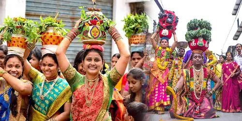 Bonalu Telangana: షాఢమాసం వచ్చిందంటే చాలు లష్కర్ బోనాల(lashkar bonalu) కోలాహలం మొదలవుతుంది. పోతురాజుల నృత్యాలు, “ జోగినుల పూనకాలు, డప్పుచప్పుళ్లు. తొట్టెల ఊరేగింపు, ఫలహారం బండ్ల ఊరేగింపుతో లష్కర్ జాతర జన జాతరలా మారుతుంది. రెండు తెలుగు రాష్ట్రాలతో పాటు దేశ విదేశాల నుంచి అమ్మవారిని దర్శించుకునేందుకు భక్తులు పెద్ద సంఖ్యలో తరలి వస్తారు. లష్కర్ జాతర సమయంలో శ్రీ ఉజ్జయినీ మహాకాళీ అమ్మవారి ఆలయానికి వచ్చే దారులన్నీ భక్తులతో నిండిపోతాయి. మహంకాళీ మాతాకీ జై! నినాదాలతో ఆ ప్రాంతమంతా మార్మోగిపోతుంది.