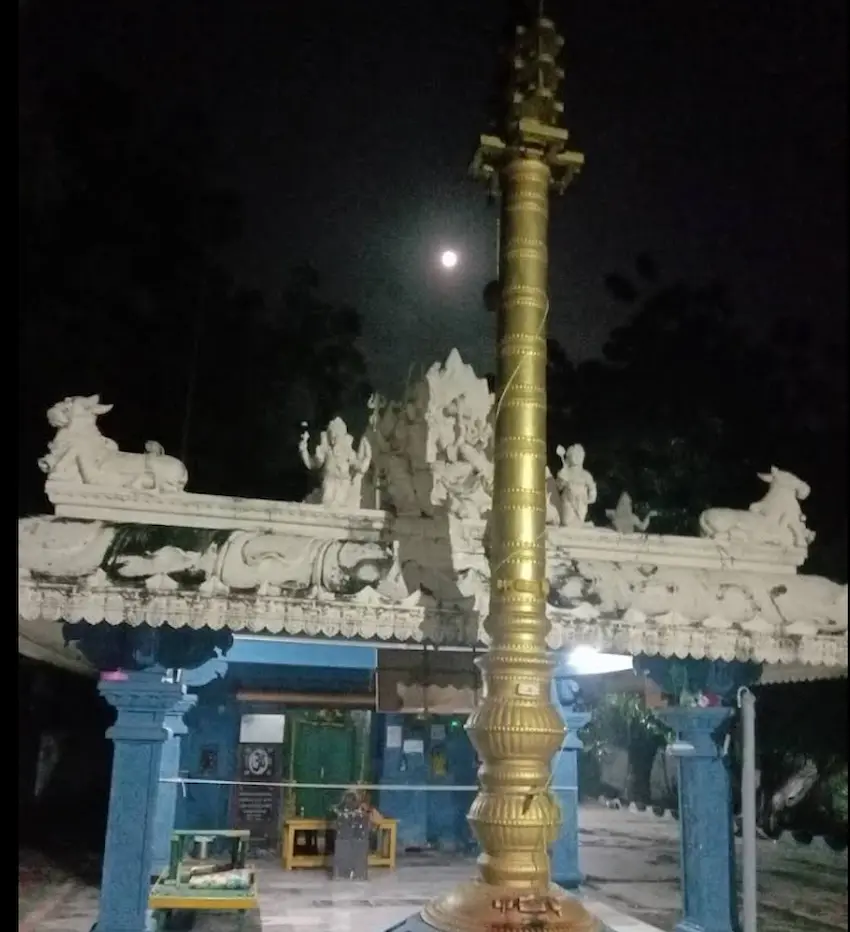 ఆలయ విశేషాలు జమ్మి, రావి, ఉసిరి, మారేడు, పారిజాతం, వేప, మామిడి చెట్లతో నిండిన ప్రాంగణంలో ఉంటుందీ చిన్న ఆలయం. రాజగోపురం లాంటి పెద్ద నిర్మాణాలు, శిల్పాలు కనిపించవు. సాదాసీదాగా ఉంటుంది. ప్రాంగణంలో కొన్ని నిర్మాణాలు ప్రత్యేకంగా కనిపిస్తాయి. ముఖమండపం పైన కుమారులతో కొలువైన ఆదిదంపతులు, స్వయంగా అభిషేకం చేసుకొంటున్న గంగాధరుడు, శివలింగ ప్రతిష్ట చేస్తున్న సీతారామచంద్రులు, లక్ష్మణుడు, హనుమంతుడు కనిపిస్తారు. ఆలయానికి ప్రధాన సంకేతం అయిన ఎత్తైన ధ్వజస్థంభం దూరానికి స్పష్టంగా కనిపిస్తుంది.