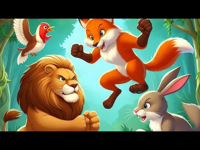 కుందేలు సమాధానానికి బిత్తరపోయింది సింహం. నక్క కల్పించుకుని “మహారాజా! ముఖం చూడటం వల్ల లాభం, నష్టం ఉండవు. మన కృషిని బట్టి జయాపజయాలు లభిస్తాయి” అని అంది.