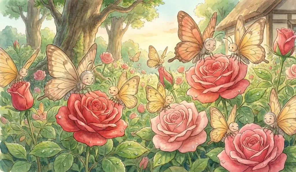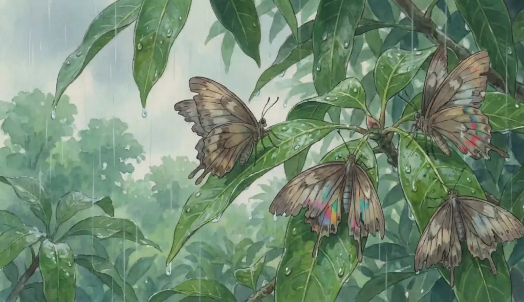 వర్షం నిలిచిన తర్వాత మామిడితోట సీతాకోక చిలుకలన్నీ చాటు నుంచి బయటికి వచ్చాయి. మిత్రులుగా వచ్చిన వాటి రంగుల మోసం కనిపెట్టే శాయి. వాటికి బుద్ధి చెప్పాలని పక్కనే తాటితోపులో ఉన్న తేనెటీగలకు విషయం చెప్పాయి. తేనెటీగలన్నీ మూకుమ్మడిగా వాటిపై దాడి చేసి ఒకటికి రెండుసార్లు కుట్టాయి. అన్ని పిల్ల సీతాకోక చిలుకలూ ఏడ్చుకుంటూ తమ సొంత అపార్ట్మెంట్కు వచ్చి చేరాయి. ‘తప్పు తెలుసుకున్నామని, ఇంకెప్పుడూ పైపై మెరుగుల కోసం ప్రాకులాడమని’ పెద్దలకు చెప్పాయి. సంతోషించిన పెద్దతరం, పిల్ల సీతాకోకచిలు కలన్నిటినీ, పక్కనే ఉన్న గులాబీ తోటలోకి తీసుకెళ్లి మధురాతిమధురమైన మకరందాన్ని తాగించాయి.