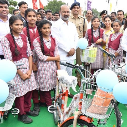 కరీంనగర్: కరీంనగర్ అంబేద్కర్ స్టేడియంలో కేంద్ర హోంశాఖ సహాయ మంత్రి బండి సంజయ్ కుమార్ పదవతరగతి చదివే విద్యార్థులకు సైకిళ్లను పంపిణీ చేసే కార్యక్ర మానికి హాజరయ్యారు. మొత్తం 20 వేల సైకిళ్లను స్వయంగా కొనుగోలు చేసిన బండి సంజయ్ (Bandi Sanjay) వాటిని దశల వారీగా పంపణీ చేసే కార్యక్రమానికి శ్రీకారం చుట్టారు. మొదట కరీంనగర్ టౌన్ లోని ప్రభుత్వ పాఠశాలల్లో పదో తరగతి చదువుతున్న విద్యార్థులందరికీ సైకిళ్లను పంపిణీ (Distribution of bicycles) చేశారు. ఈ కార్యక్రమానికి బండి సంజయ్ తోపాటు టీచర్ ఎమ్మెల్సీ మల్క కొమరయ్య, జిల్లా కలెక్టర్ పమేలా సత్పతి, పోలీస్ కమిషనర్ గౌస్ ఆలం, అదనపు కలెక్టర్ అశ్వినీ, మున్సిపల్ కమిషనర్ ప్రపుల్ దేశాయ్, మాజీ ఎమ్మెల్యే బొడిగె శోభ, బీజీపీ కరీంనగర్, సిరిసిల్ల జిల్లాల అధ్యక్షుడు గంగాడి క్రిష్ణారెడ్డి, ఆర్డీవో, డీఈవోతోపాటు పలువురు అధికారులు హాజరయ్యారు.