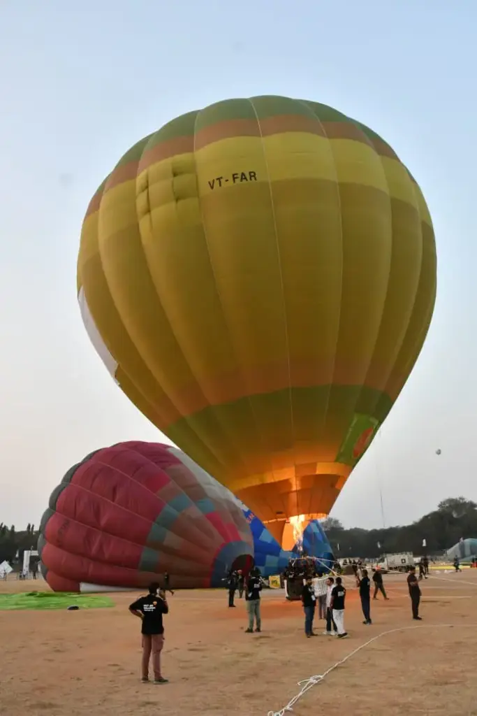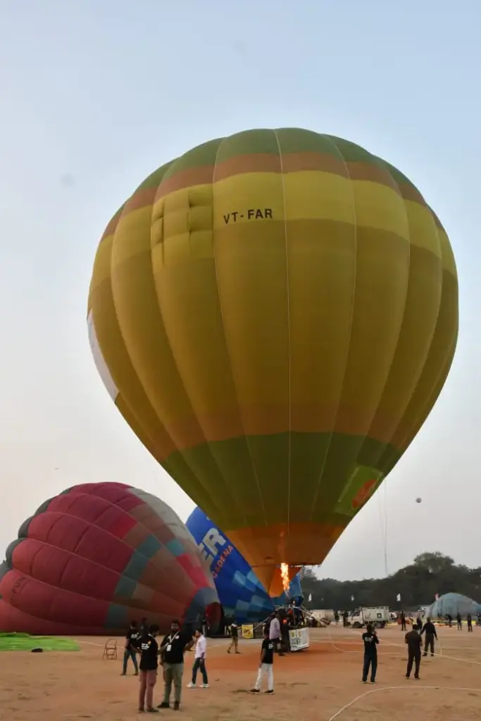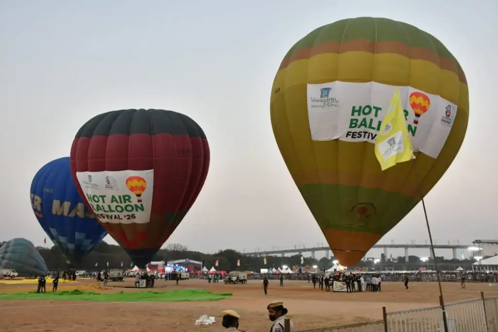 గగనవిహారాల ప్రేమికులకు కన్నుల పండుగగా నిలిచే హాట్ ఎయిర్ బెలూన్ ఫెస్టివల్ నగరవాసులను విశేషంగా ఆకర్షిస్తోంది.గోల్కొండ కోట పక్కన ఉన్న ది హైదరాబాద్ (HYD) గోల్ఫ్ క్లబ్ గ్రౌండ్స్లో ఈ ఉత్సవం ఈ ఉదయం 7 గంటలకు ఘనంగా మొదలైంది. సినీ, ఇంటర్నెట్ మాధ్యమాలలో మాత్రమే చూసిన భారీ హాట్ ఎయిర్ బెలూన్లు ప్రత్యక్షంగా నగరవాసులను మంత్రముగ్ధులను చేస్తున్నాయి.