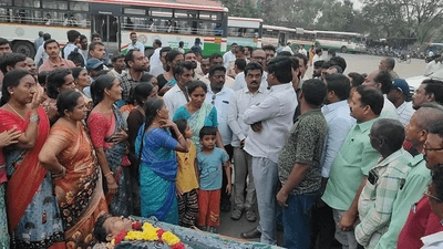 డిపో ఎదుట మృతదేహంతో కుటుంబ సభ్యుల నిరసన