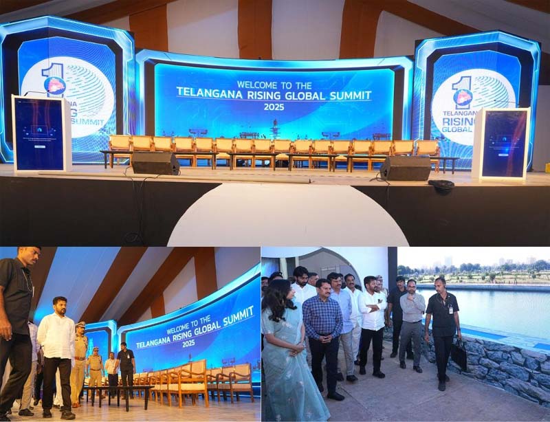 సమ్మిట్ ఏర్పాట్లపై ముఖ్యమంత్రి రేవంత్ రెడ్డి స్వయంగా ప్రత్యేక శ్రద్ధ వహించారు. శనివారం నాడు ఆయన హెలికాప్టర్లో ఏరియల్ వ్యూతో పాటు, ప్రాంగణాన్ని గంటకు పైగా కలియతిరిగి ప్రతి హాల్ను, స్టాళ్లను నిశితంగా పరిశీలించారు. ఈ సందర్భంగా ఆయన అధికారులకు ముఖ్యమైన సూచనలు చేశారు. అంతర్జాతీయ కంపెనీల ప్రతినిధులు, కేంద్ర మంత్రులు, ఇతర ప్రముఖులకు స్వాగతం, వసతి, సీటింగ్, ఫైర్ సేఫ్టీ, ఇంటర్నెట్ వంటి అన్ని సదుపాయాల విషయంలో ఎలాంటి రాజీ పడకుండా అత్యున్నత ప్రమాణాలు పాటించాలని ఆదేశించారు. ముఖ్యంగా, ప్రాంగణంలో తెలంగాణ తల్లి విగ్రహాన్ని తప్పనిసరిగా ఏర్పాటు చేయాలని సీఎం ఆదేశించారు. అంతేకాకుండా, రాష్ట్ర ప్రభుత్వం ప్రతిష్టాత్మకంగా చేపట్టిన మూసీ నది పునరుజ్జీవనం వంటి కీలక కార్యక్రమాలకు సంబంధించిన డిజిటల్ స్క్రీనింగ్లను ఏర్పాటు చేసి, రాష్ట్ర ప్రగతిని అతిథులకు తెలియజేయాలని సూచించారు.